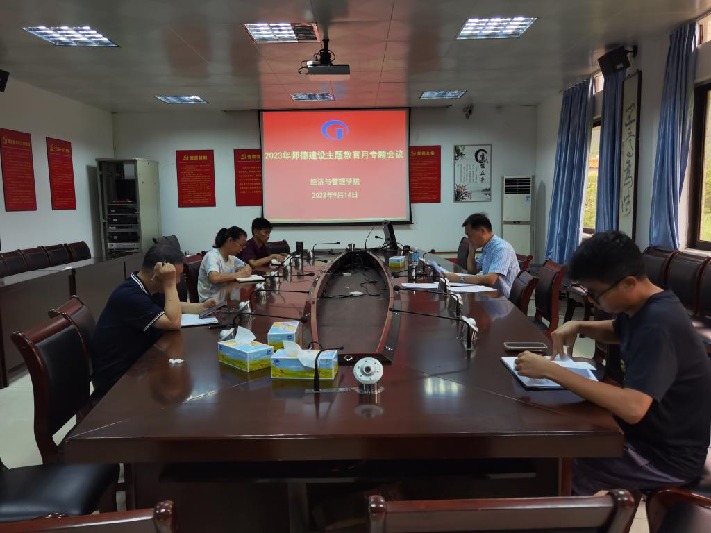 [经管公司 讯]2023年9月14日上午,太阳集团tyc539在院办501召开了2023年师德建设主题教育月专题会议,旨在学习领会公司关于开展师德建设主题教育月活动的通知精神,部署公司师德建设主题教育月活动。出席本次会议的人员有公司领导干部、办公室主任及专职组织员,会议由黎天宇书记主持。
