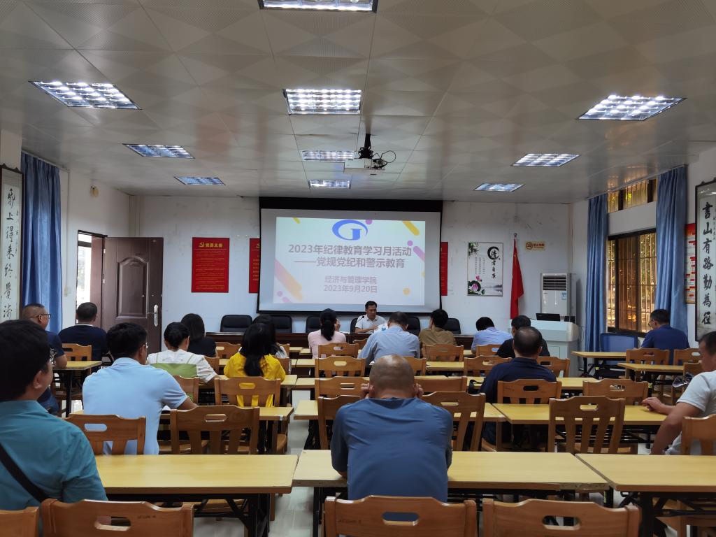 [经管公司讯]为深入推进党风廉政建设和反腐败斗争学习教育,持续加强作风纪律建设,进一步增强广大党员干部的廉洁自律意识,公司党委于2023年9月20日下午在公司107室开展纪律教育学习月集中教育活动,会议由黎天宇书记主持,公司全体党员领导干部、全体教师党员参加了活动。
