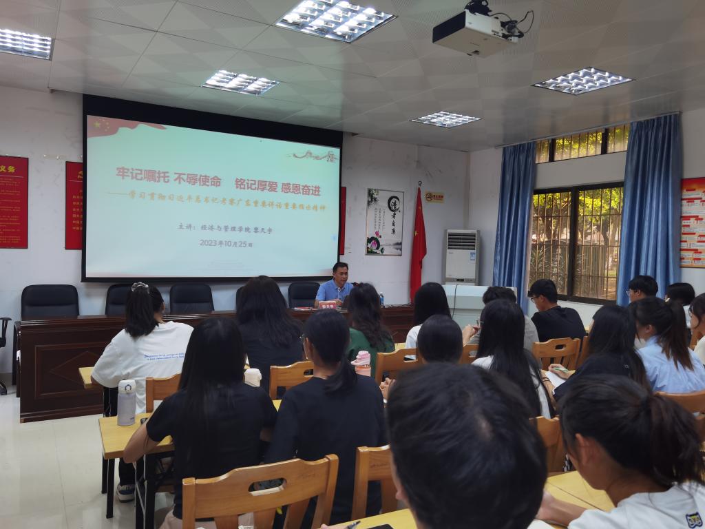 [经管公司讯]2023年10月25日下午,公司党委书记黎天宇在院办107开展了以“学习贯彻习近平总书记考察广东重要讲话重要指示精神”为主题的思政第一课。公司员工党员、入党积极分子等共60人参加。