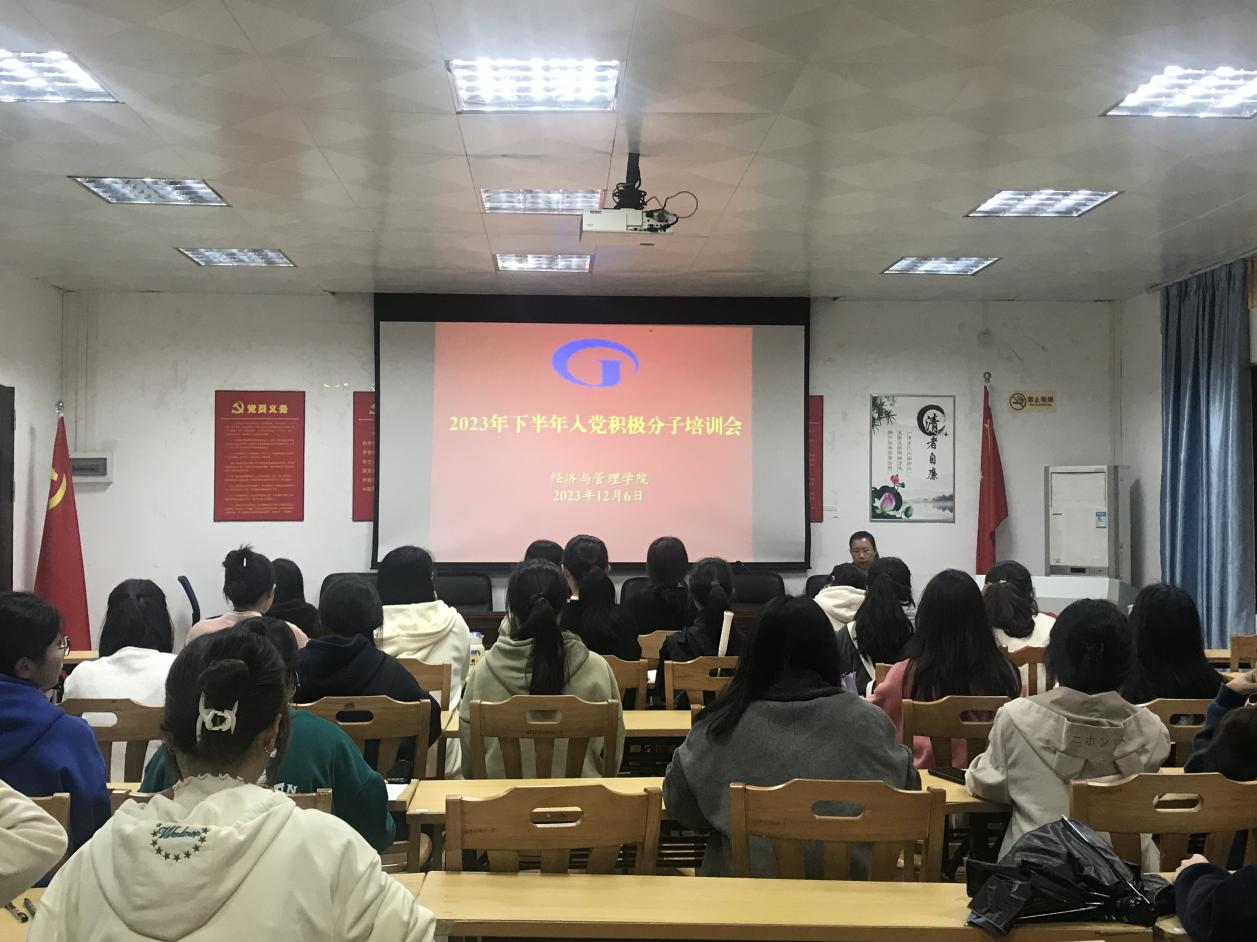 [经管公司 讯] 为提高入党积极分子及预备党员的思想政治素养,严把党员发展“入口关”,2023年12月6日下午,公司于院办107室开展入党积极分子和预备党员培训会。会议由党委副书记颜春萍主持,参加会议的人员有公司专职组织员王嘉以及今年下半年新发展的入党积极分子和预备党员。