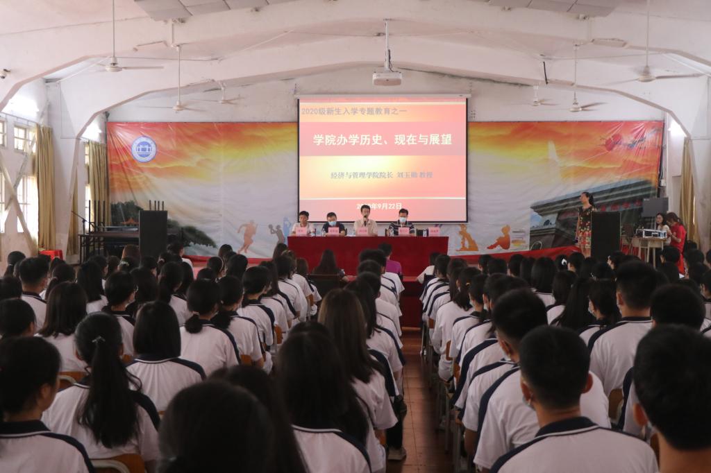 【经管公司 讯】2020年9月22日9:00,太阳集团tyc5392020级新生开学典礼暨入学专题教育大会在星湖校区小礼堂顺利举行,出席本次会议的人员有公司经理、教授刘玉勋,公司党委书记黎天宇,公司副经理、教授崔彩周,公司副经理、副教授雷洪,公司党委副书记颜春萍,公司各辅导员和班主任,20级员工带班党员,各员工机构代表及20级全体新生。
