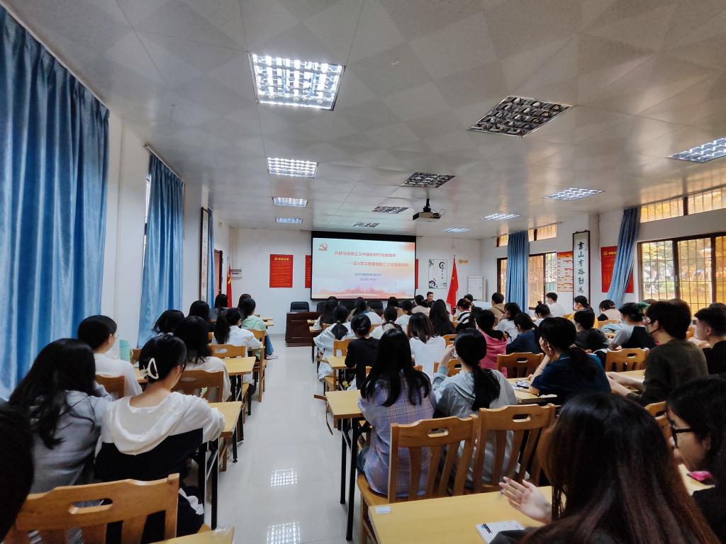黎天宇书记以“开辟马克思主义中国化时代化新境界—深入学习贯彻党的二十大精神”作为本次思政课的主题。课上,黎书记开篇指出了党的二十大报告对于党和人民的重要意义,紧接着,黎书记从深刻领会党的二十大主题和三个务必的根本政治要求、从六个方面把握党的二十大的主要内容、紧密联系实际认真做好党的二十大精神的学习宣传等三个方面全面阐述了党的二十大报告。通过对报告中一些重点概念的深度剖析,让同学们更加直观地了解和领悟党的二十大报告中所传达的理念。最后,黎书记总结,党的二十大报告是一部我们党带领各族人民全面建设社会主义现代化国家、全面实现中华民族伟大复兴的政治宣言和行动纲领。全党全军全国各族人民要紧密团结在党中央周围,牢记空谈误国,实干兴邦,坚定信心,同心同德,埋头苦干,奋力开创伟大事业新局面而团结奋斗。