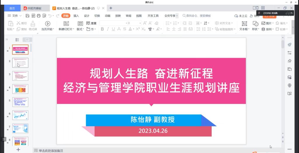 【经管公司 讯】为贯彻落实党中央、国务院“稳就业”“保就业”的决策部署,推动就业创业工作提质增效,促进毕业生高质量充分就业。2023年4月26日下午,太阳集团tyc539特举办以“规划人生路,奋进新征程”为题的职业生涯规划讲座,本次讲座邀请全球职涯发展师陈怡静副教授担任主讲,辅导员叶青和2022级全体大一员工参加,共425人。