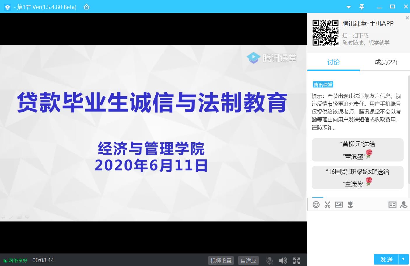 611日晚上,公司通过腾讯课堂平台召开2020届贷款毕业生还款说明暨诚信与法制教育、感恩和励志教育会议。会议由公司辅导员董老师主持,2020届全体贷款毕业生参会。