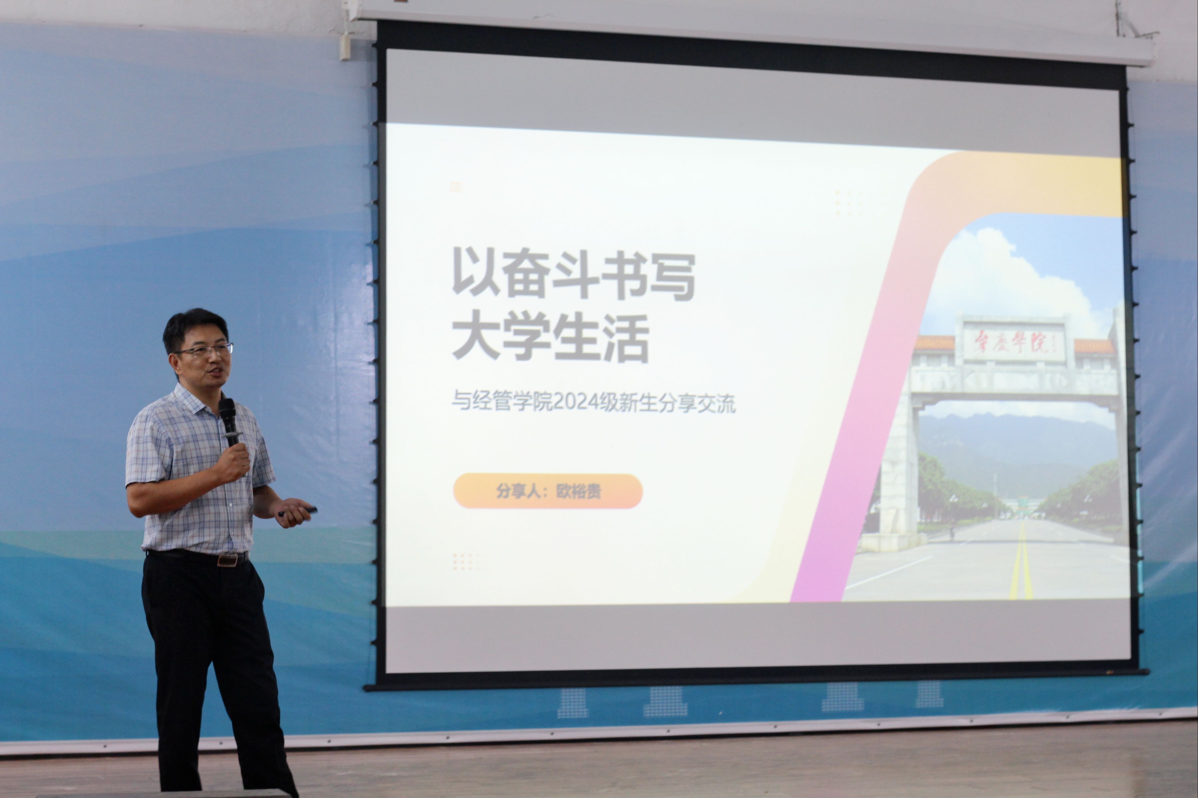 【经管公司讯】10月11日,太阳集团tyc539特邀2000级财政学专业杰出员工欧裕贵返回母校,于星湖校区小礼堂为2024级全体新生带来了一场精彩的经验分享会。公司党委副书记巫燕娜、团委书记温文莉及320名新生共同参加了此次活动。