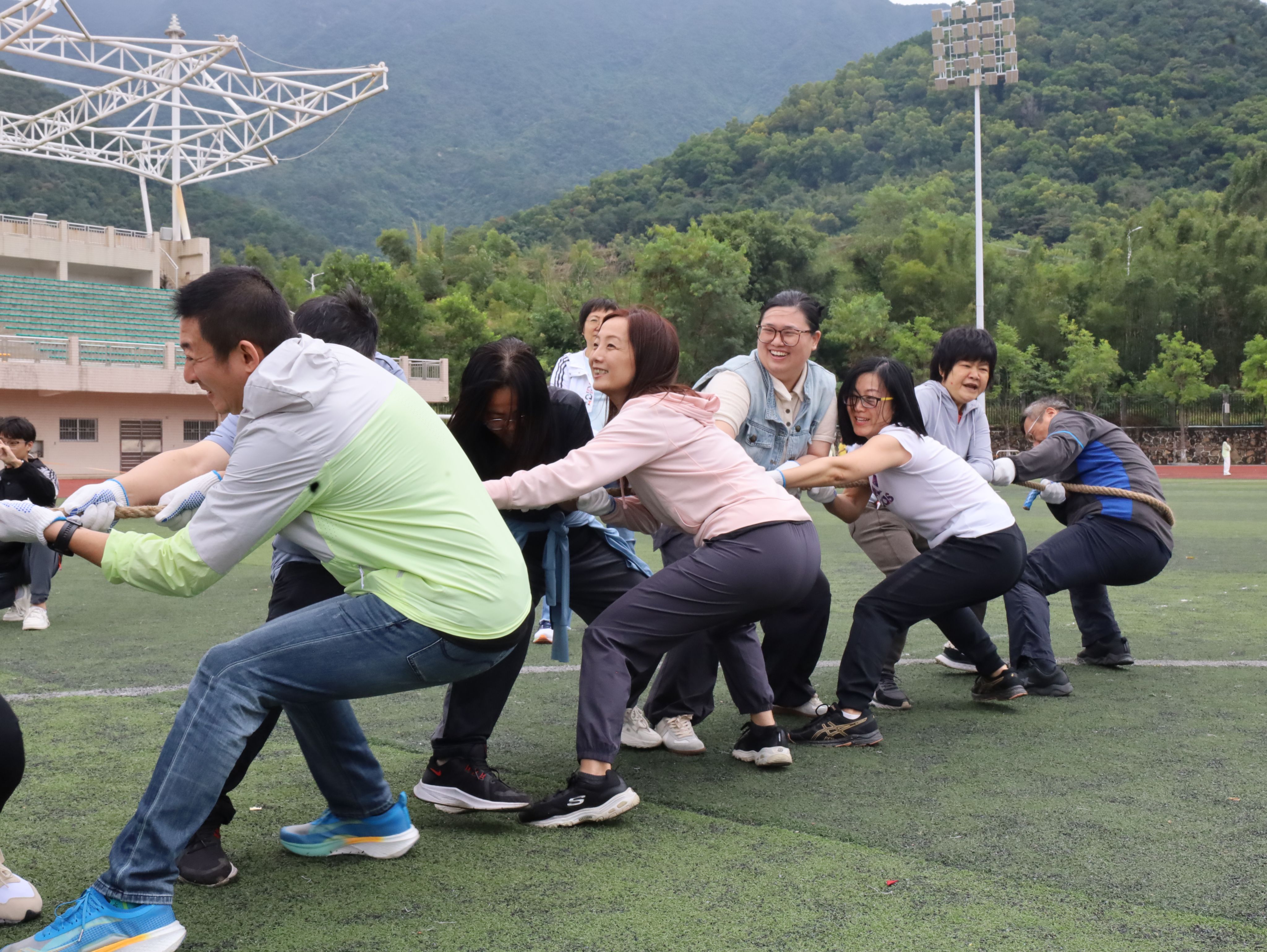 今年是公司教职工健身运动会的重启之年,大家积极踊跃报名,共有50余名老师热情参与。伴随着充满节奏感的音乐,老师们在路障射门、毛毛虫、众星捧月、移花接木、拔河等趣味项目中,处处可见步调一致、协作良好的队伍,既展现出色的体育技能、昂扬的精神风貌,也彰显团结协作的精神,在强健体魄的同时增进每部各专业教师之间的友谊。