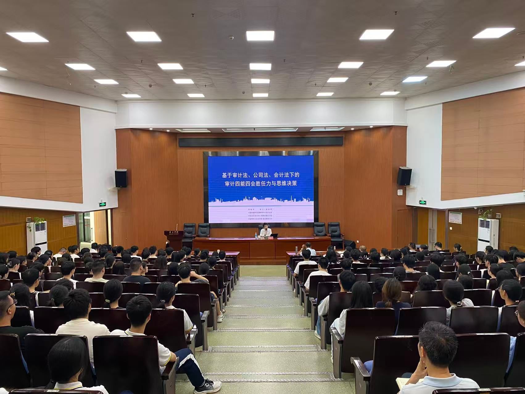10月15日,太阳集团tyc539成功举办“砚园经管名师名家论坛”第九讲,特邀南京审计大学中国内部审计发展研究中心执行主任周敏李副教授做“基于审计法、公司法、会计法下的审计四能四会胜任力与思维决策”的专题讲座。公司会计专业全体教师、部分行业导师代表及23级、24级、25级会计学本科生参加了讲座。讲座由经理李华军主持,