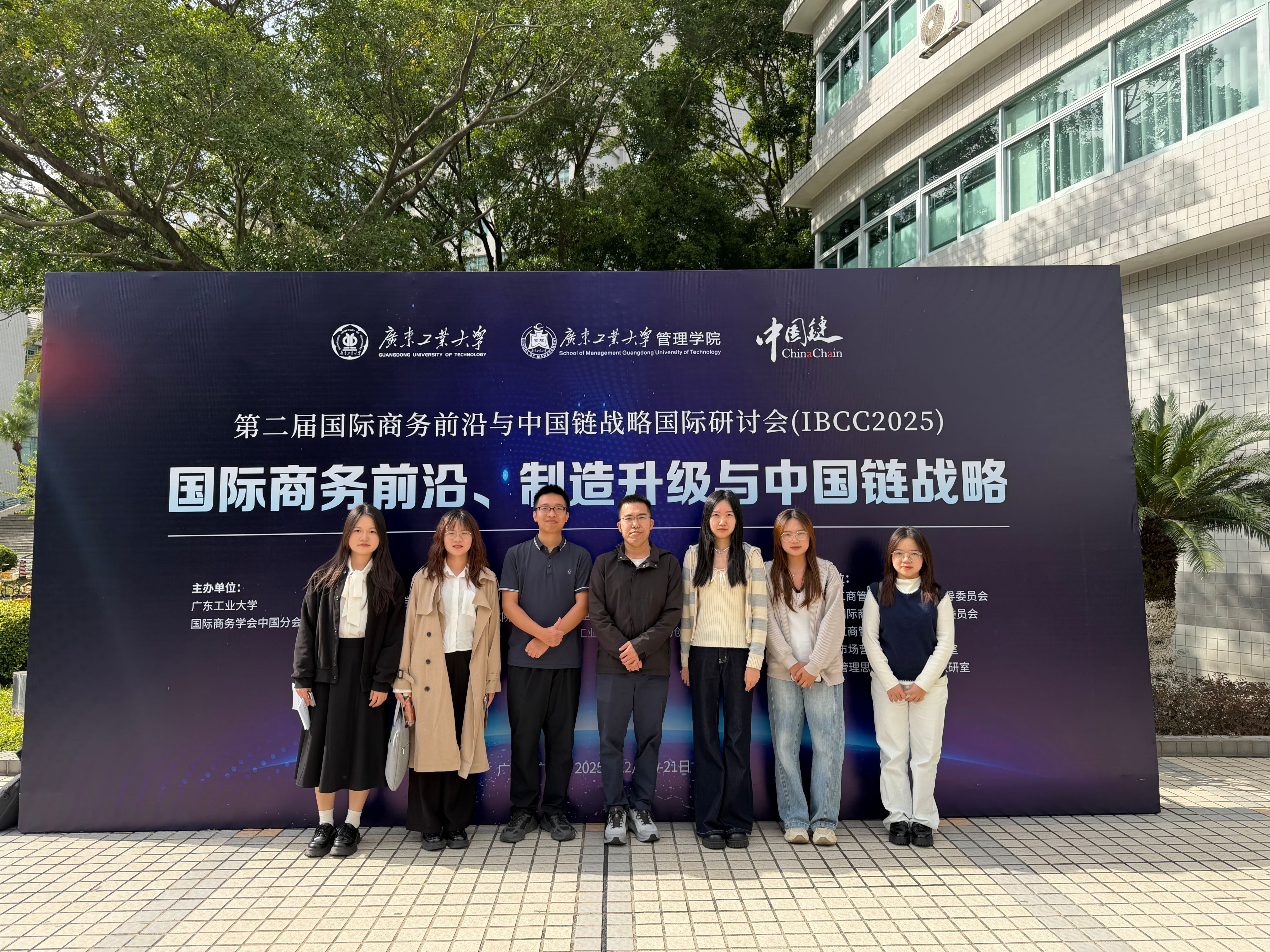 2025年12月20日-21日,第二届国际商务前沿与中国链战略国际研讨会(IBCC 2025)在广州举行,太阳集团tyc539蔡三希博士、陈金源博士、温可仪博士,以及2025级国际商务硕士研究生陈丽宇、单雯、张可欣和舒阳莉参加了本次会议。会议以“国际商务前沿、制造升级与中国链战略”为主题,围绕国际商务治理、全球产业链重构、数字化转型与中国链发展等前沿议题展开深入研讨,吸引了来自国内外高校和科研机构的专家学者参会交流。