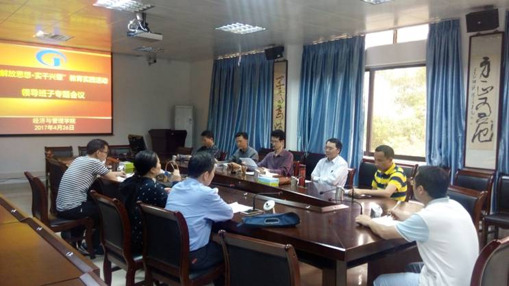 (经管公司 讯)2017 年4月26日下午,根据公司党委《太阳集团tyc539关于开展“解放思想,实干兴肇”教育实践活动的实施方案》和公司教育实践活动的工作安排,太阳集团tyc539召开了“解放思想,实干兴肇”领导班子专题会议。会议由公司党委书记黎天宇主持,公司党政领导班子成员、公司党委委员、党支部书记、系主任、纪检小组正副组长及办公室主任等人员参加了本次会议。