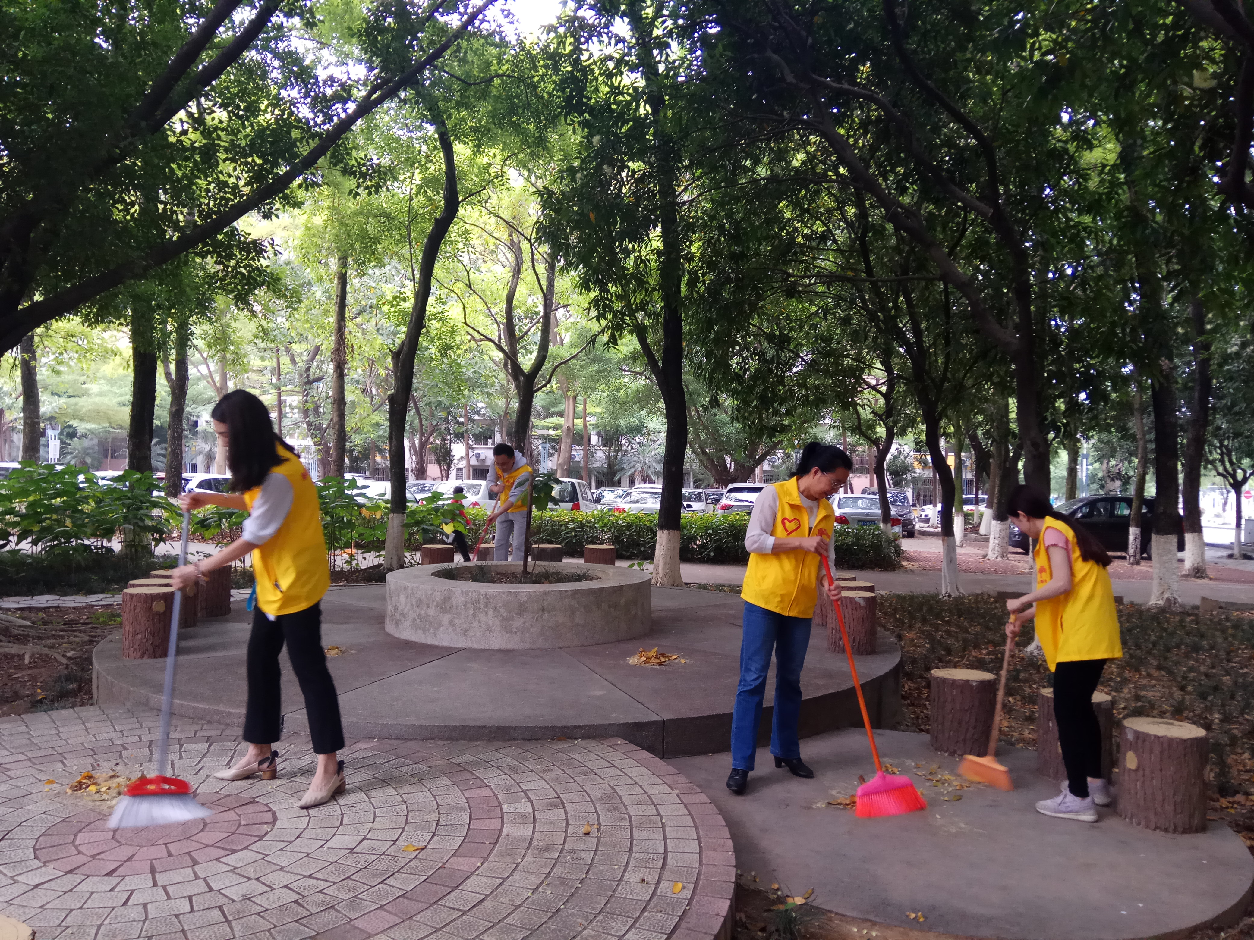 活动在八点半准时开始,分配任务领取各自所需的工具后,立即投入到校园清扫工作中。每个人都仔细认真地清扫地上的垃圾和落叶,不放过一丁点影响校园整洁的杂物。经过大家集体的努力与付出,活动结束,公司办公楼前的垃圾与落叶已全部被清扫。
