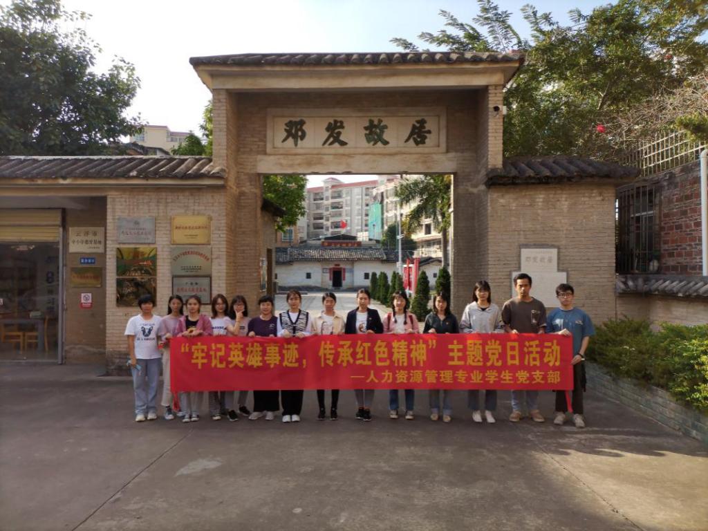 [经管公司 讯] 为进一步坚定党员同志的理想信念,弘扬爱国主义精神,人力资源管理专业员工党支部于11月26日组织党员前往云浮市邓发故居开展“牢记英雄事迹,传承红色精神”主题党日活动。
