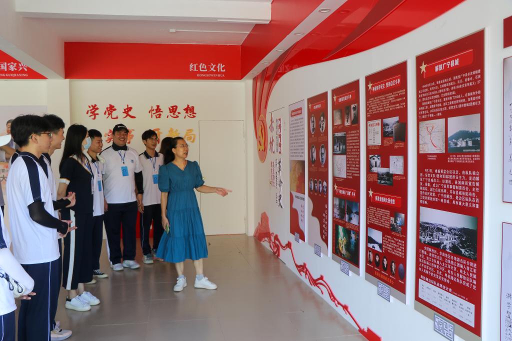 在参观赤坑镇红色文化展厅时,党委副书记颜春萍带我们回顾了广宁县解放斗争史;为深入实地探访红色故事,赤坑中学的陈老师为我们讲解了粤桂湘边纵队司令部旧址与炮楼的故事,让心灵受到红色文化的洗礼;万里无云的天幕下,红色的团旗锃锃发亮,志愿者庄严宣誓,重温了入团仪式,誓言铮铮,更加坚定了我们的初心使命,书写无悔青春篇章;同时,志愿者们坚信“以史为鉴”的道理,朗诵《永远的旗帜,永远的中国梦》,并献礼经典拍摄相关视频,品味深意,抒发心中对祖国的骄傲与自豪,牢记担当使命,传递信仰,不断奋进。