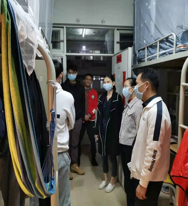 【经管公司讯】为进一步加强党史学习教育和落实“我为群众办实事”,11月10日,公司党委书记黎天宇、党委副书记颜春萍以及公司辅导员老师卢若蒙、董濠鋆深入员工宿舍开展宿舍巡查。