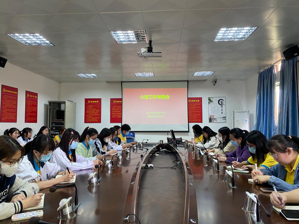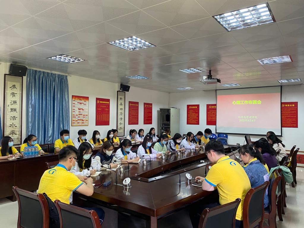 全体成员到齐后,会议正式开始。在会议上温文莉老师及颜春萍副书记提出了本学年度的工作重点,强调工作中的注意事项,并让全体工作人员继续加强与班级心理委员沟通,时刻关注员工心理健康问题。接着各部门负责人针对上学期的工作作出总结反省,同时会长李沛臻提出了开创结合有经管特色的心理月刊的大致思路,鼓励三大部门互相配合,加强成员间的友好交流,明确了本学期工作的路线规划。会议的最后,两位会长对假期中积极完成小组的分配工作的小组给予奖励并合影留念。