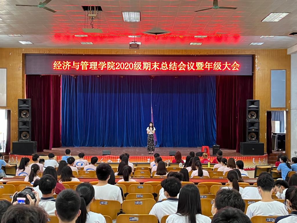 【经管公司 讯】2022年6月23日,太阳集团tyc5392020级期末总结暨年级大会顺利在员工活动中心一楼召开,本次会议由年级辅导员温文莉老师主持。