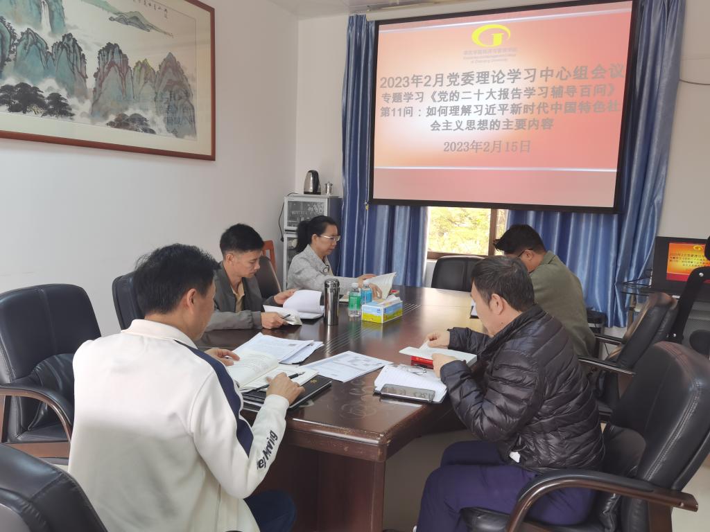 本次会议学习的具体内容为《党的二十大报告学习辅导百问》第11问:“如何理解习近平新时代中国特色社会主义思想的主要内容?”会上,党委书记黎天宇先作关于本次会议主题的辅导报告。党的十八大以来,以习近平同志为核心的党中央,坚持把马克思主义基本原理同中国具体实际相结合、同中华优秀传统文化相结合,科学回答了新时代坚持和发展什么样的中国特色社会主义、怎样坚持和发展中国特色社会主义等重大时代课题,创立了习近平新时代中国特色社会主义思想,实现了马克思主义中国化时代化新的飞跃。这一科学理论,从理论上讲具有原创性、突破性、前瞻性;从实践上讲具有根本性、战略性、历史性;从架构上讲具有系统性、整体性、严密性,是当代中国马克思主义、21世纪马克思主义,是中华文化和中国精神的时代精华,是马克思主义中国化时代化的最新科学理论体系。