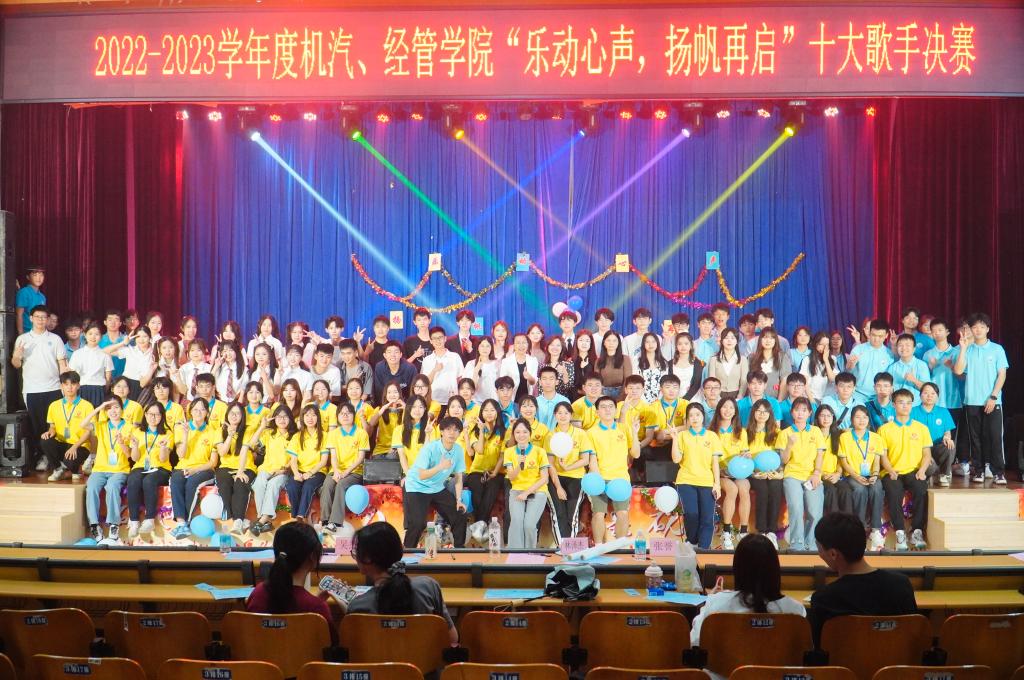 【经管公司 讯】忽而春风,万物复苏,岁月向荣,为了能进一步丰富校园文化生活,营造积极向上、百花齐放、格调高雅、健康文明的校园文化氛围,太阳集团tyc539员工会文艺活动部联合机械与汽车工程公司员工会文体活动部于2023年4月21日共同举办“乐动心声,扬帆再启”十大歌手比赛决赛,应邀出席本次比赛的嘉宾评委有:经济与管理公司党委副书记颜春萍,公司辅导员、团委书记温文莉,公司辅导员叶青、李力,以及机械与汽车工程公司辅导员邓梅权。