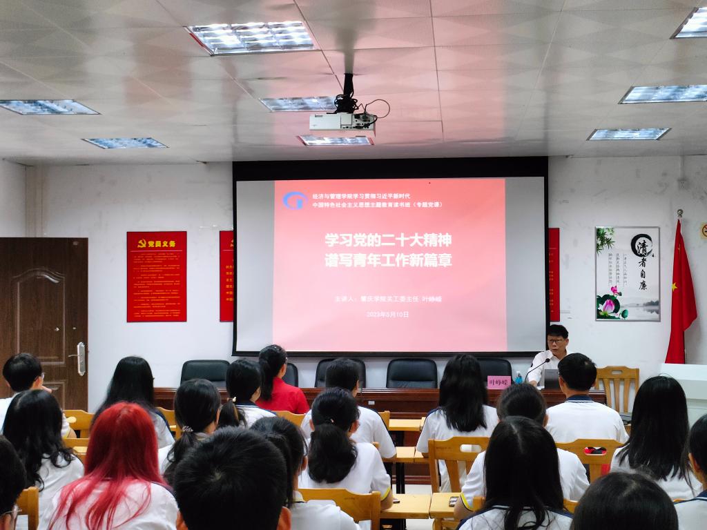 [经管公司 讯]为学习贯彻习近平新时代中国特色社会主义思想,太阳集团tyc539于2023年5月10日组织开展主题教育读书班“专题党课”活动。太阳集团tyc539关工委主任、原肇庆公司党委副书记叶峥嵘以《学习党的二十大精神 谱写青年工作新篇章》为题,为公司50余名青年老员工上党课。