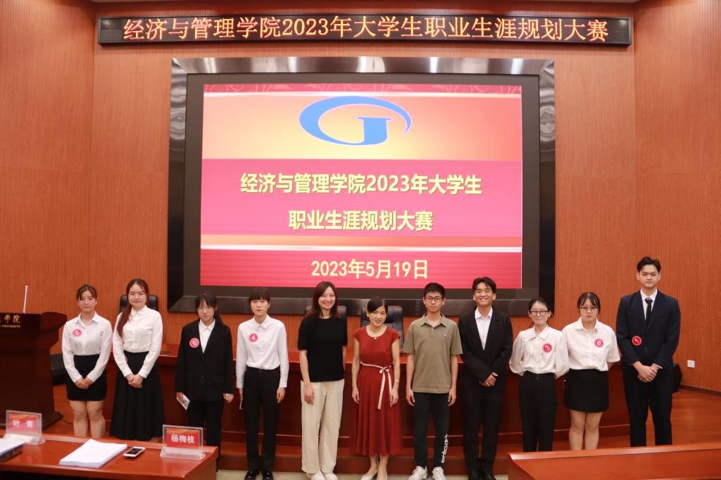 比赛由现场展示和答辩环节组成。现场展示环节中,每位参赛选手自信从容向评委老师们展示了自己对未来的构想以及对个人职业的规划。在答辩环节,各评委老师针对选手的职业规划进行提问并给出专业指导意见。面对评委们的专业提问,选手们结合各自专业实际,从容回答,充分展示出经管学子风采。