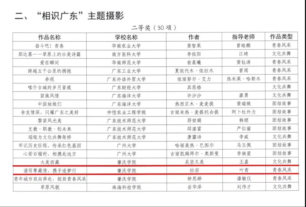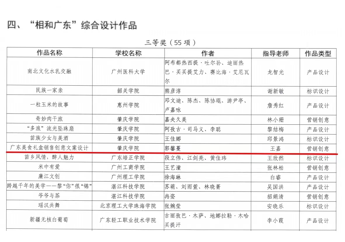 活动启动以来,公司积极宣传、精心组织、广泛动员,师生们踊跃参与,获得可喜成绩!其中,公司学子在“相识广东”主题摄影活动中共有2项获奖;“相和广东”综合设计活动中共有1项获奖。具体获奖结果如下: