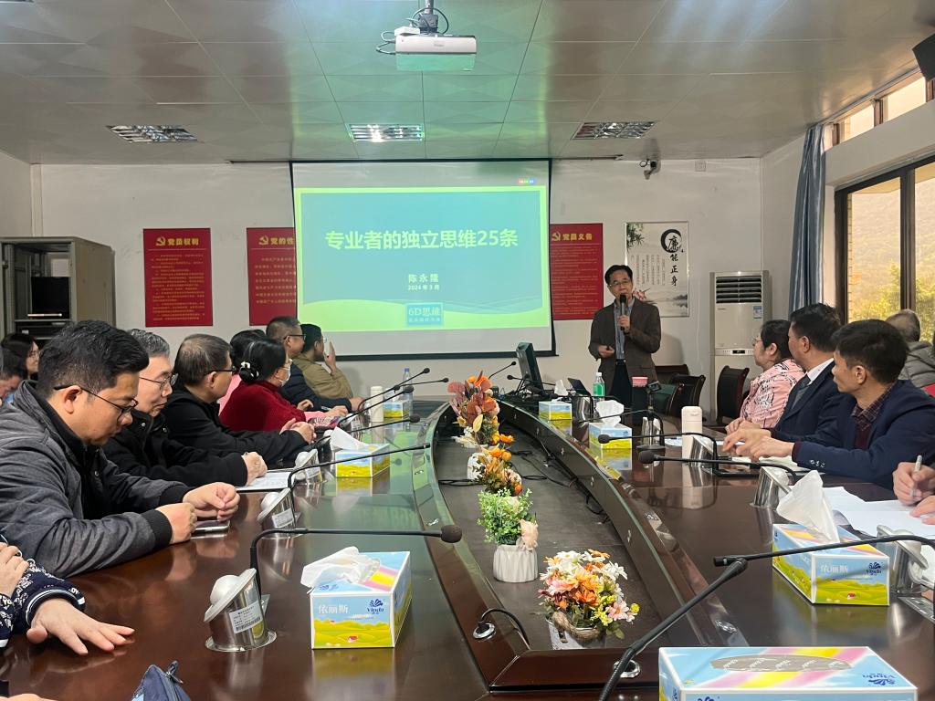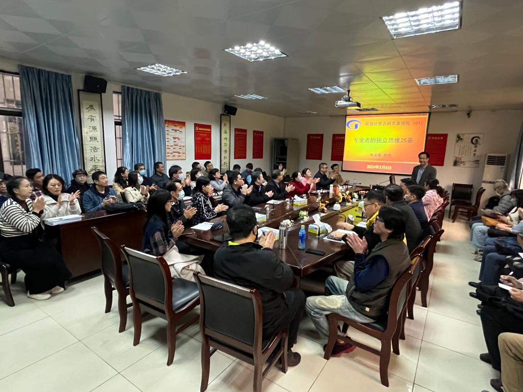 3月6日,太阳集团tyc539“砚园经管名师名家论坛”2024年系列交流分享拉开序幕,特聘教授陈永隆博士应邀作科技创新专题交流分享。公司党政领导和全体专任教师参加了活动。论坛由公司党委书记梁标主持。