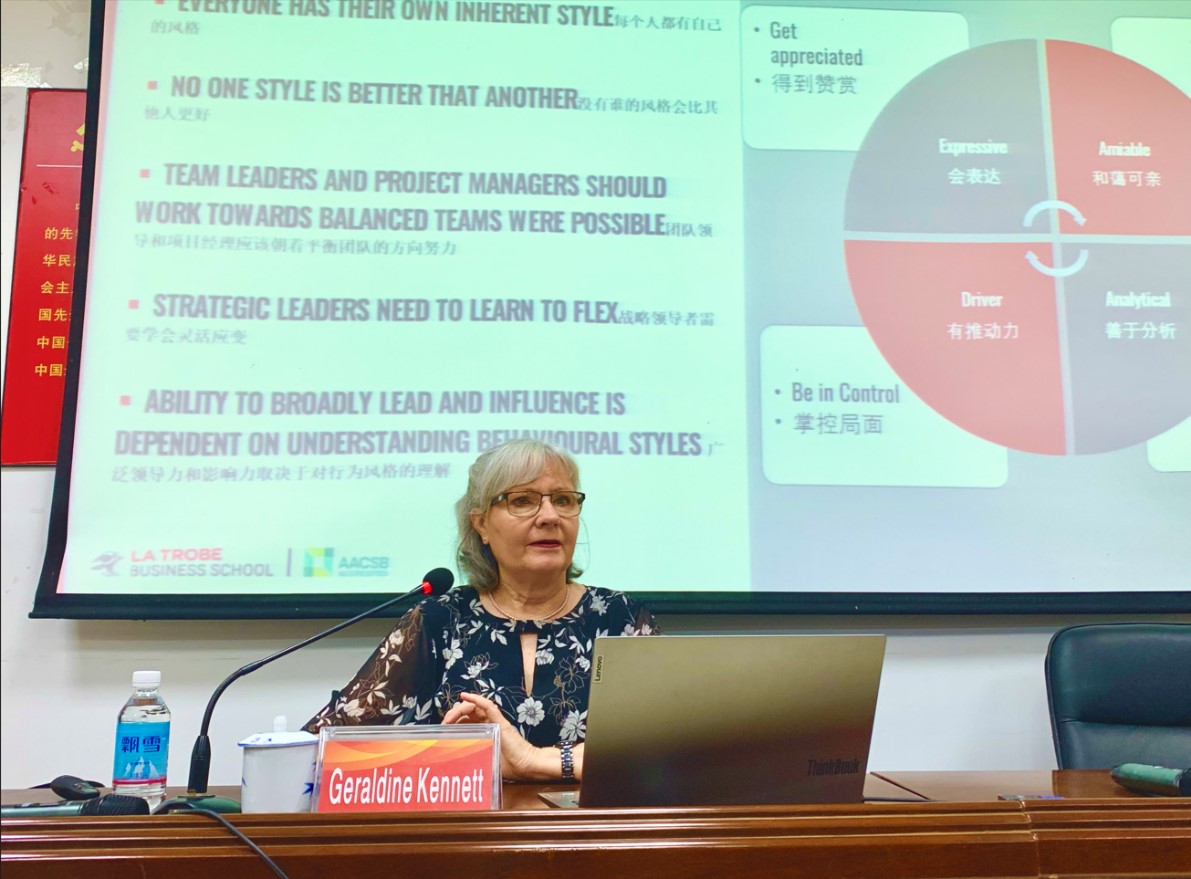 【经管公司 讯】48日,澳大利亚乐卓博大学商公司副经理Geraldine Kennett博士在公司对外交流合作部交流科科长曾悦怡的陪同下,到公司做了题为“有影响力的沟通”的精彩讲座,公司65名国际经济与贸易专业员工聆听了讲座。