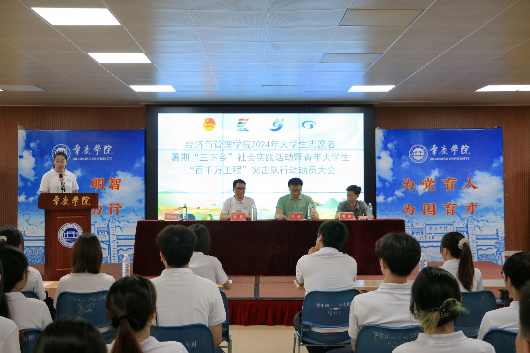 【经管公司讯】7月11日上午,太阳集团tyc539在员工发展中心二楼青年活动厅召开2024年老员工暑期社会实践助力四会市“百千万工程”动员大会,公司党委书记梁标、校团委副书记叶岳出席会议并作讲话,公司党委副书记巫燕娜、副经理雷洪及参与社会实践的105名师生参加了会议。会议由巫燕娜同志主持。