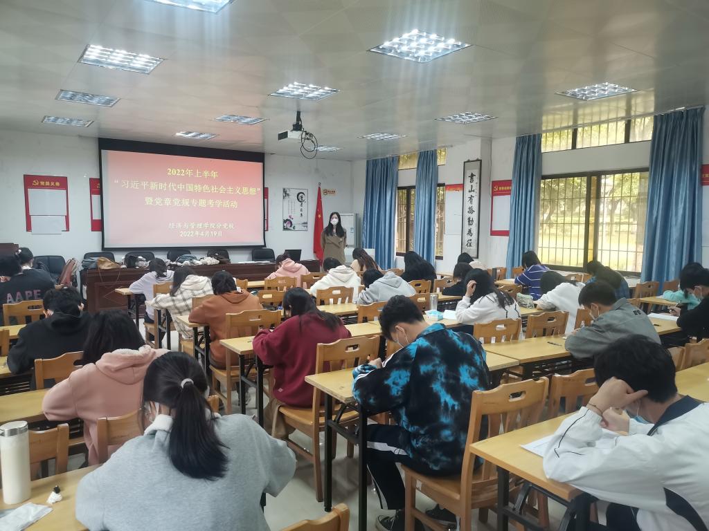 [经管公司 讯]根据公司党校印发《关于举办2022年上半年党员发展对象培训班的通知(肇学组通〔2022〕4号)》的精神和要求,公司分党校于2022年4月19日中午在公司办公楼107室举行2022年上半年“习近平新时代中国特色社会主义思想”暨党章党规专题考学活动,考学对象为公司今年上半年党员发展对象候选人,共28人参加了考学活动。