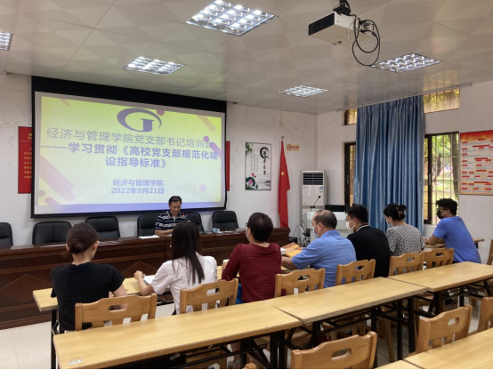 [经管公司 讯]为了深入学习贯彻习近平新时代中国特色社会主义思想,加强公司党支部规范化建设,按照公司党委组织部关于转发《中共广东省委组织部关于印发 <党支部规范化建设指导标准>的通知》要求,公司党委于2022年9月21日在公司107室召开党支部书记培训会,对全体党支部书记开展了学习贯彻《高公司党支部规范化建设指导标准》培训。会议由公司党委书记黎天宇主持,全体党支部书记出席了会议。