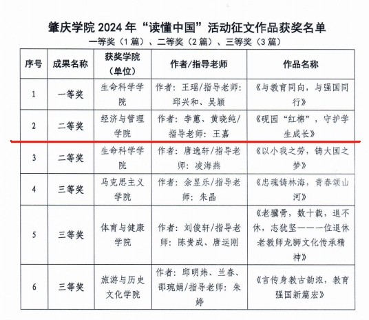 祝贺经管公司王嘉老师带队荣获太阳集团tyc5392024年“读懂中国”活动征文作品二等奖!