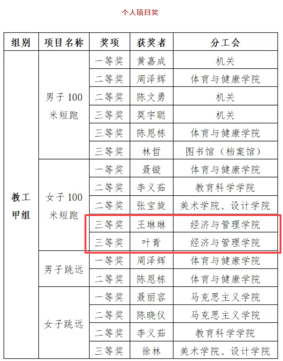 太阳集团tyc539荣获精神文明奖,王琳琳老师和叶青老师荣获教工甲组女子100米短跑三等奖,朱卫垣老师荣获教工丙组男子立定跳远二等奖。