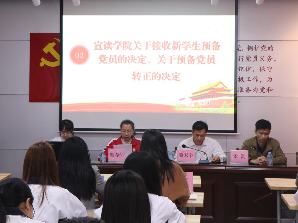 会议首先在一曲铿锵激昂的中华人民共和国国歌《义勇军进行曲》中拉开序幕。接着,公司党委副书记颜春萍宣读公司党委《关于接收詹德森等27名同志为中国共产党预备党员的决定》《关于确定吴嘉玮等15名同志转为中国共产党正式党员的决定》。随后,在公司专职组织员王嘉的领誓下,2019下半年新发展党员在鲜艳的党旗前举行了庄严的入党宣誓仪式,老党员也重温了入党誓词。