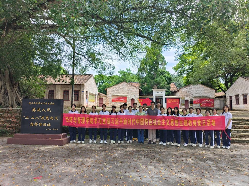 5月27日,为深入开展学习贯彻习近平新时代中国特色社会主义思想主题教育,经济与管理公司党委组织投资学专业员工党支部、市场营销专业员工党支部党员到“德庆人民‘二·二八’武装起义指挥部旧址”、“德庆‘二·二八’武装起义战斗旧址”开展主题教育。