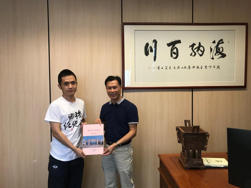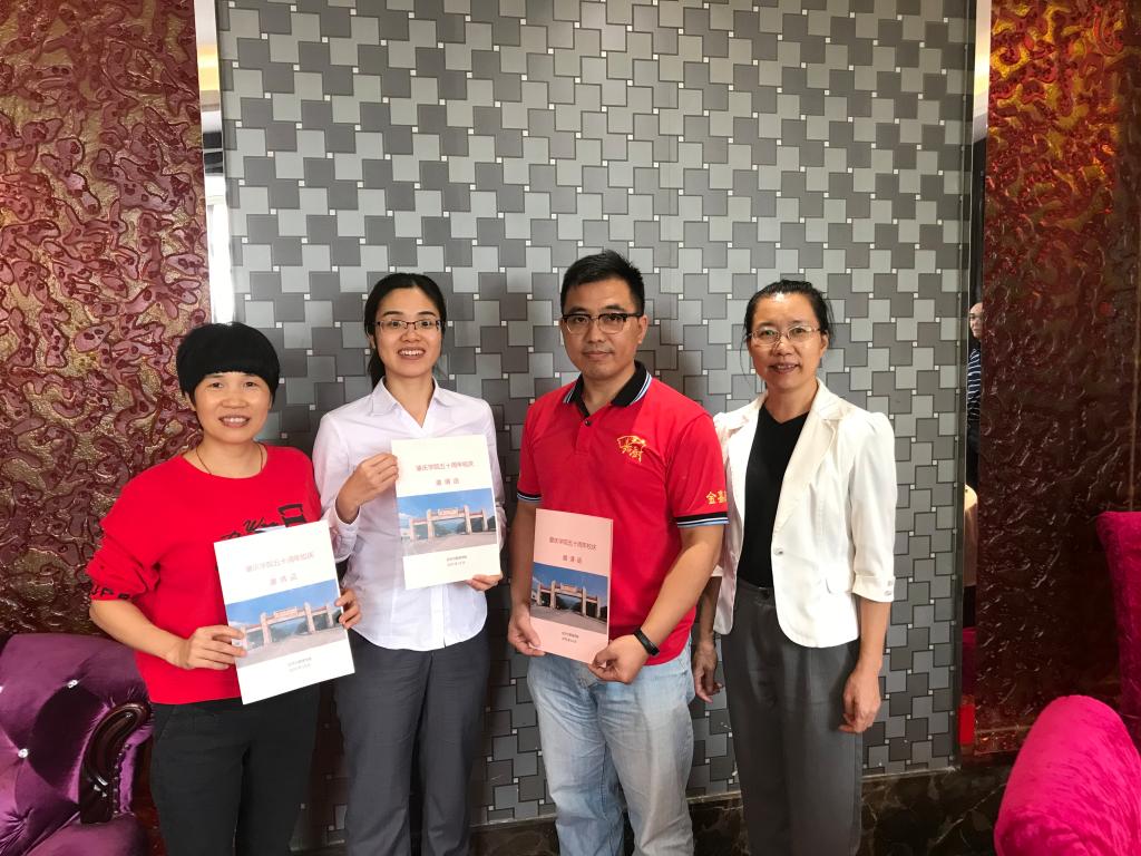 颜书记为员工黎倩、余文深、黄建楚送上校庆邀请函