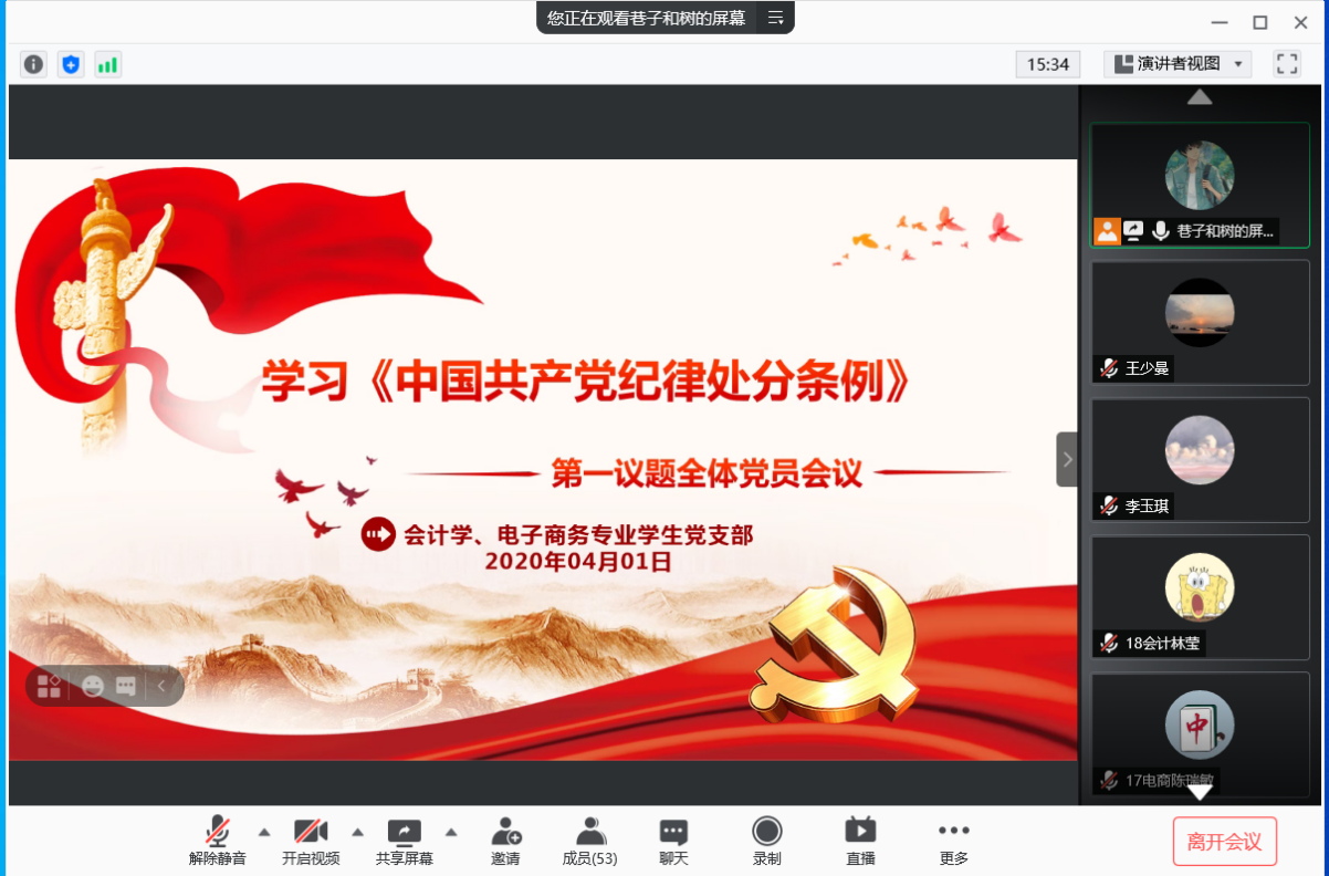 4月份会计学、电子商务专业员工党支部学习《中国共产党纪律处分条例》