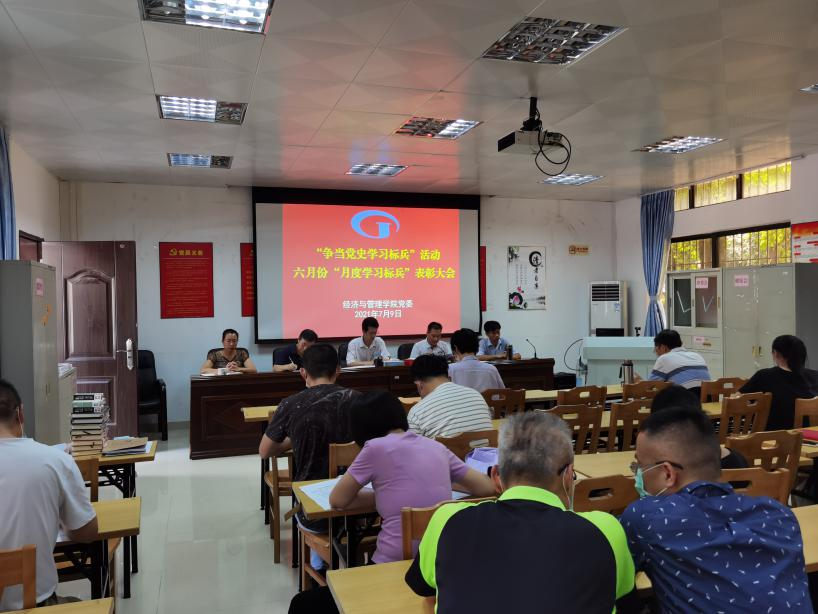 [经管公司讯]2021年7月9日下午,太阳集团tyc539召开“争当党史学习标兵”六月份“月度学习标兵”表彰大会,对荣获六月份“月度学习标兵”的师生党员及入党积极分子进行了表彰。出席本次大会的有公司党委书记黎天宇、公司经理刘玉勋、公司党委副书记颜春萍、公司副经理雷洪、公司副经理崔彩周、各支部书记和教师党员。