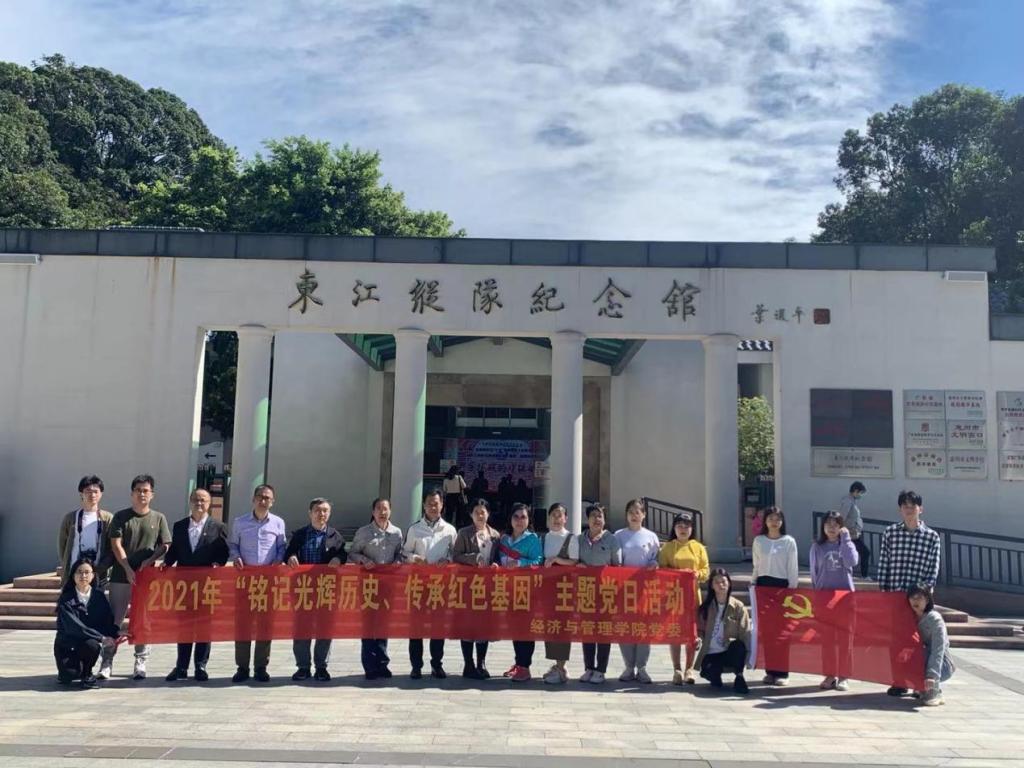 [经管公司讯]为了深入贯彻落实习近平总书记在党史学习教育动员大会上的重要讲话精神,贯彻落实公司党史学习教育工作部署结合公司党史学习教育工作安排,经济与管理公司党委于2021年10月22日至2021年10月24日组织师生党员前往梅州叶剑英纪念馆、重走习近平走过的潮州路线和惠州东江纵队纪念馆开展“铭记光辉历史,传承红色基因”主题党日活动,进行革命传统教育。参加本次活动的人员包括公司教师党员、员工党支部副书记和部分员工党员等共19人