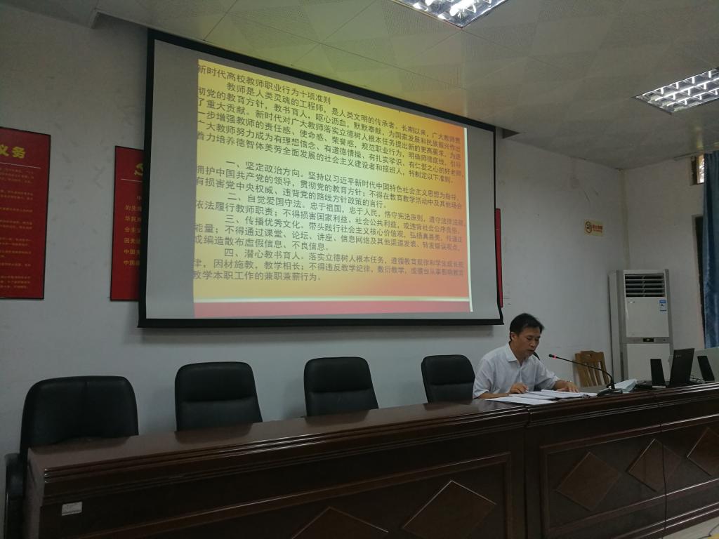 [经管公司讯]按照公司党委办公室关于印发《太阳集团tyc5392020年师德建设主题教育月活动方案》的总体要求和公司2020年师德建设主题教育月活动实施方案的活动安排,公司党委于9月16日下午在107会议室召开了开展师德建设主题教育活动动员大会,并按要求开展了系列主题活动。会议由公司党委书记黎天宇主持,全体教职工参加了会议。