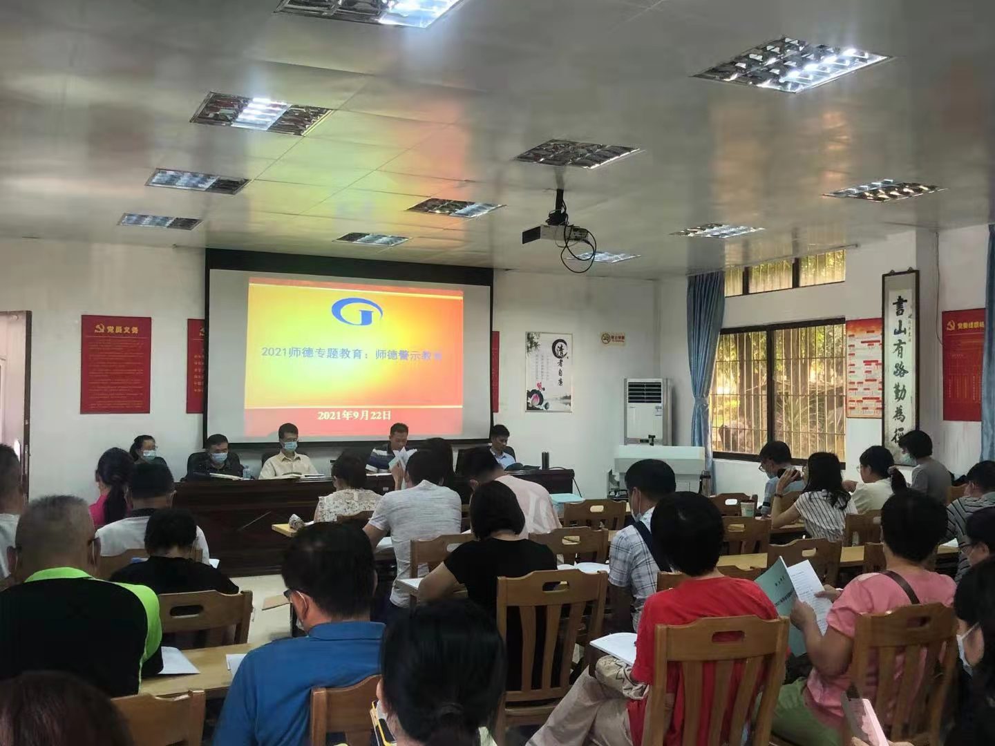 [经管公司 讯]为进一步加强和改进新时代师德师风建设,全面提升公司广大教职员工的思想政治素质和职业道德水平,努力造就一支师德高尚、业务精湛、结构合理、充满活力的高素质专业化创新型教师队伍,根据《广东省教育厅关于开展2021年师德建设主题教育月活动的通知》和《太阳集团tyc5392021年师德建设主题教育月活动方案》有关要求,公司党委于9月22日下午在107会议室召开了2021年师德建设主题教育月动员及工作布置会。会议由公司党委书记黎天宇主持,公司教师约70人参加了会议。